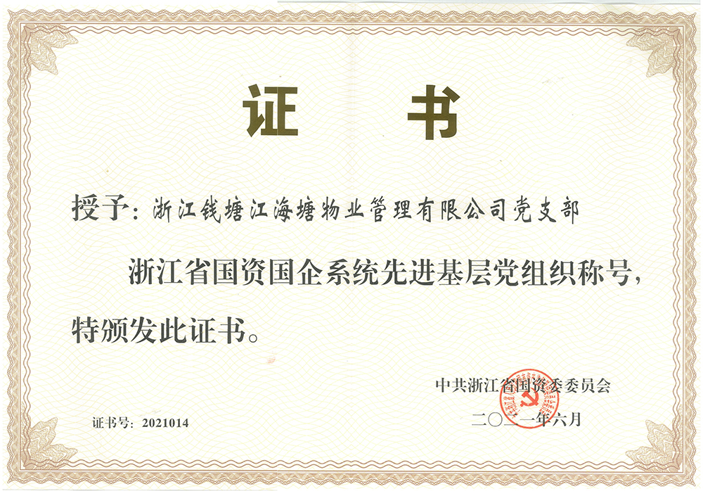 浙江省国资国企系统先进基层党组织称号-省国资委(2021.6)